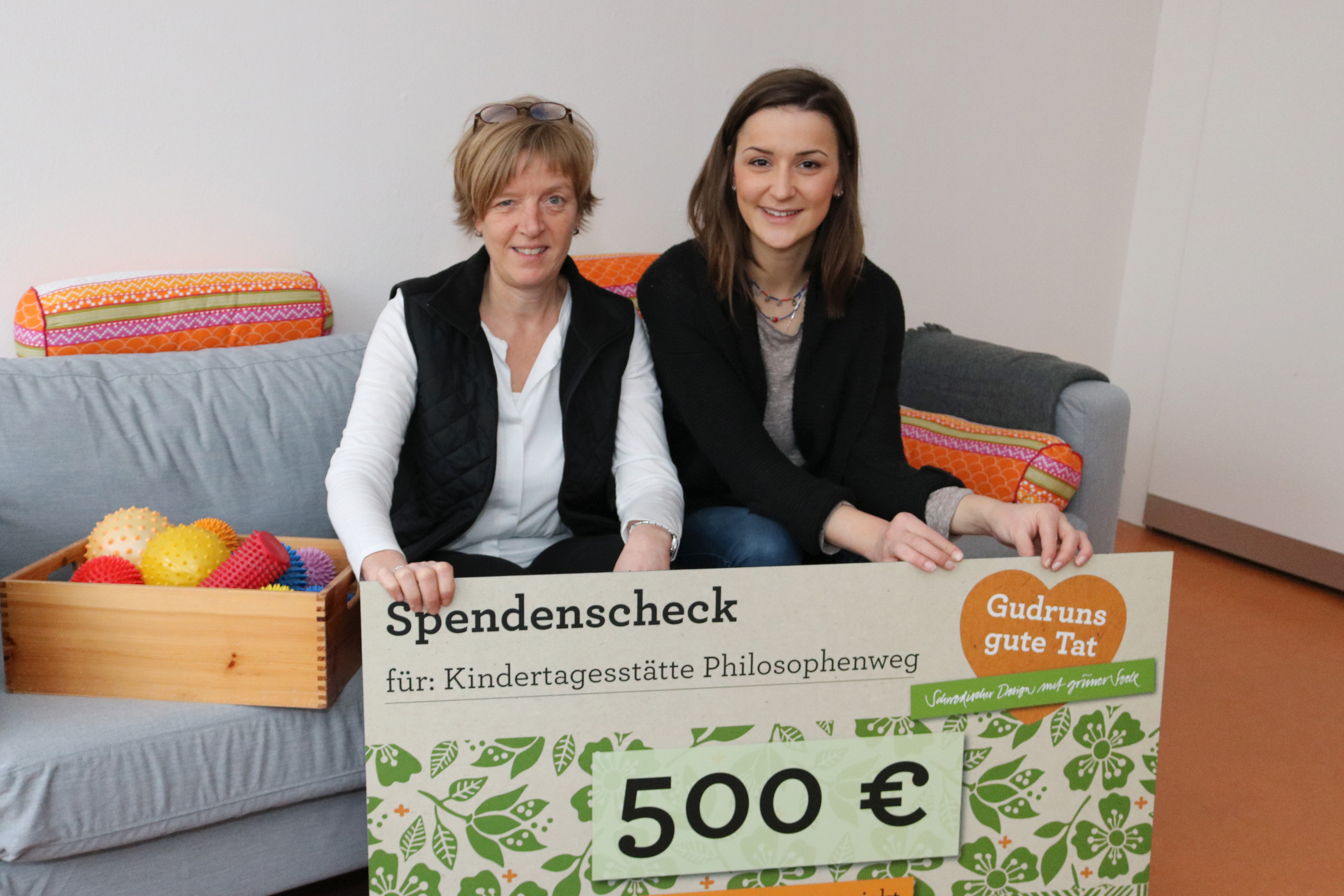 Oldenburg, 15.12.2016 – Die Modefirma Grudrun Sjörden hat sich mit einem mobilen Konzeptladen auf eine Tour durch West- und Norddeutschland begeben. Während dieser Tour unterstützt die Firma acht soziale Einrichtungen unter dem Motto „Gudruns Gute Tat – Wir verschönern Ihr Herzensprojekt“. Mitarbeitende der integrativen Kindertagesstätte waren auf die Aktion aufmerksam geworden und hatten sich beworben, um einen Ruheraum für Kinder mit Beeinträchtigungen auszustatten. Jetzt überreichte Jacqueline Wusthoff den Betrag von 500 Euro an Einrichtungsleiterin Astrid Brundiers.