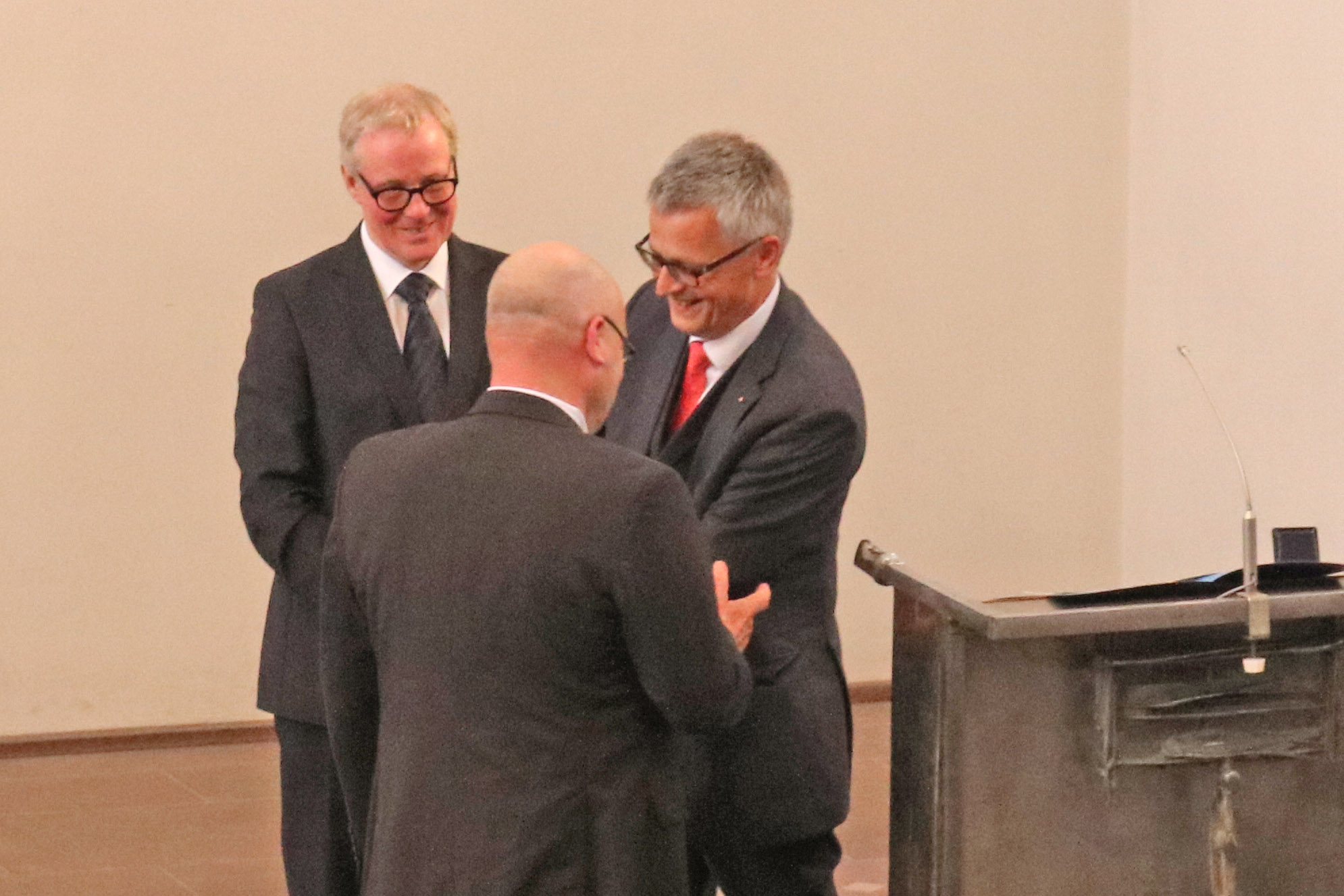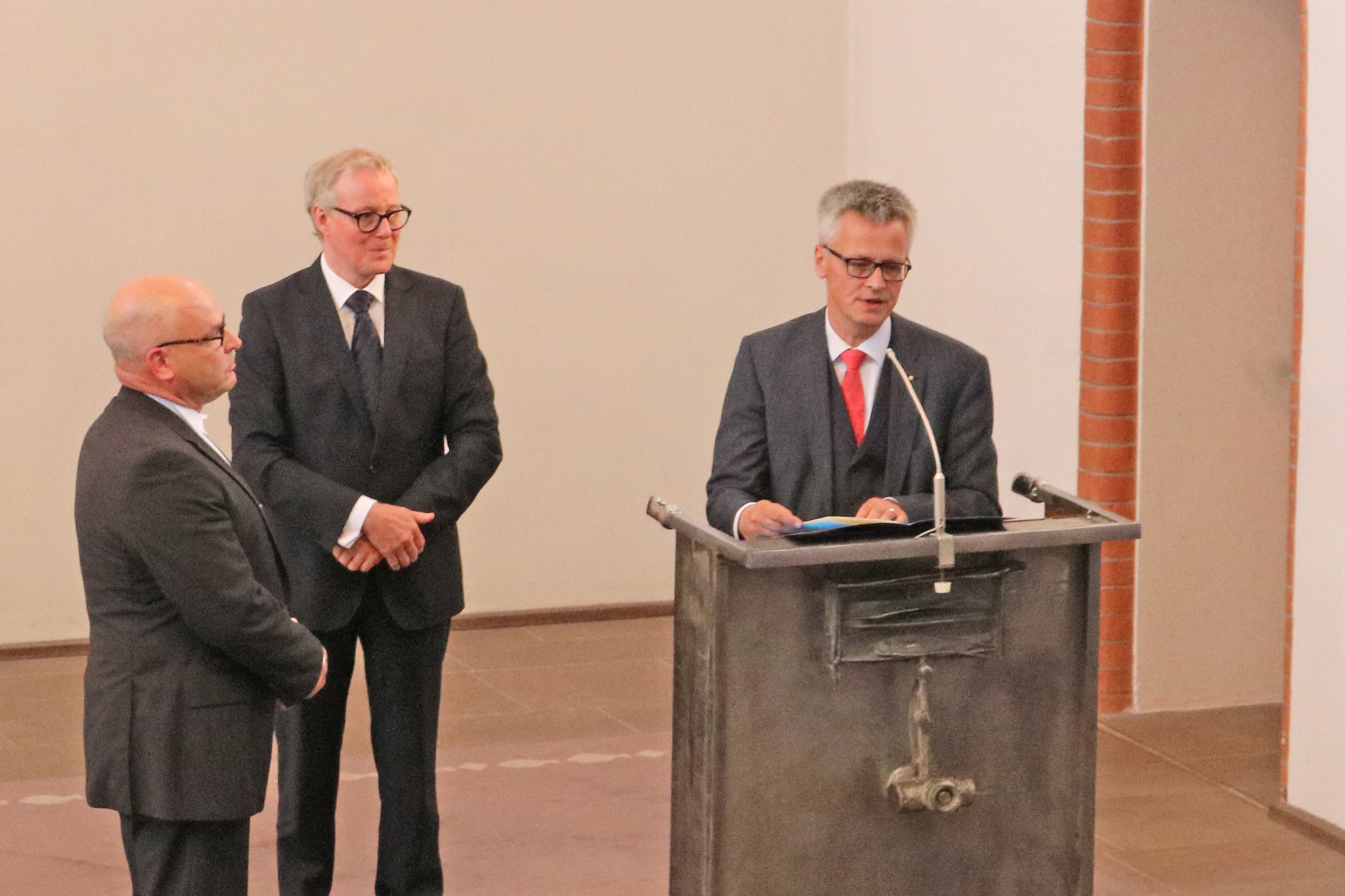 Oldenburg,10.Juni 2016 – „Abschiede sind nicht seine Sache“, gestand Klaus Backhaus nach seiner Emeritierung aus dem Pfarramt. Die Diakonie ehrte das ausgeschiedenen Aufsichtsratsmitglied des Diakonischen Werkes der Ev.-Luth. Kirche in Oldenburg mit dem goldenen Kronenkreuz. Die höchste Ehrenbezeichnung wird verliehen im Auftrag des Präsidenten der Diakonie Deutschland. Nach dem Ende des Abschiedsgottesdienstes in der Ansgarikirche legte Backhaus seine Amtstracht ab. Der Begriff der Emeritierung sei ihm lieber, erklärte Backhaus, denn zur Ruhe setzen wolle er sich noch lange nicht. So bleibt Backhaus auch weiterhin Vorstandsvorsitzender der Evangelischen Hospizstiftung. Dort wirke Klaus Backhaus in besonderem Maße diakonisch vermittelnd und verbindend, erklärte Diakonie-Vorstand Thomas Feld. Zwar werde Backhaus aus dem Amt verabschiedet, seine besondere persönliche Art und seine vielen persönlichen Verbindungen wie zum Elisabeth- und Friedas-Frieden-Stift blieben erhalten.