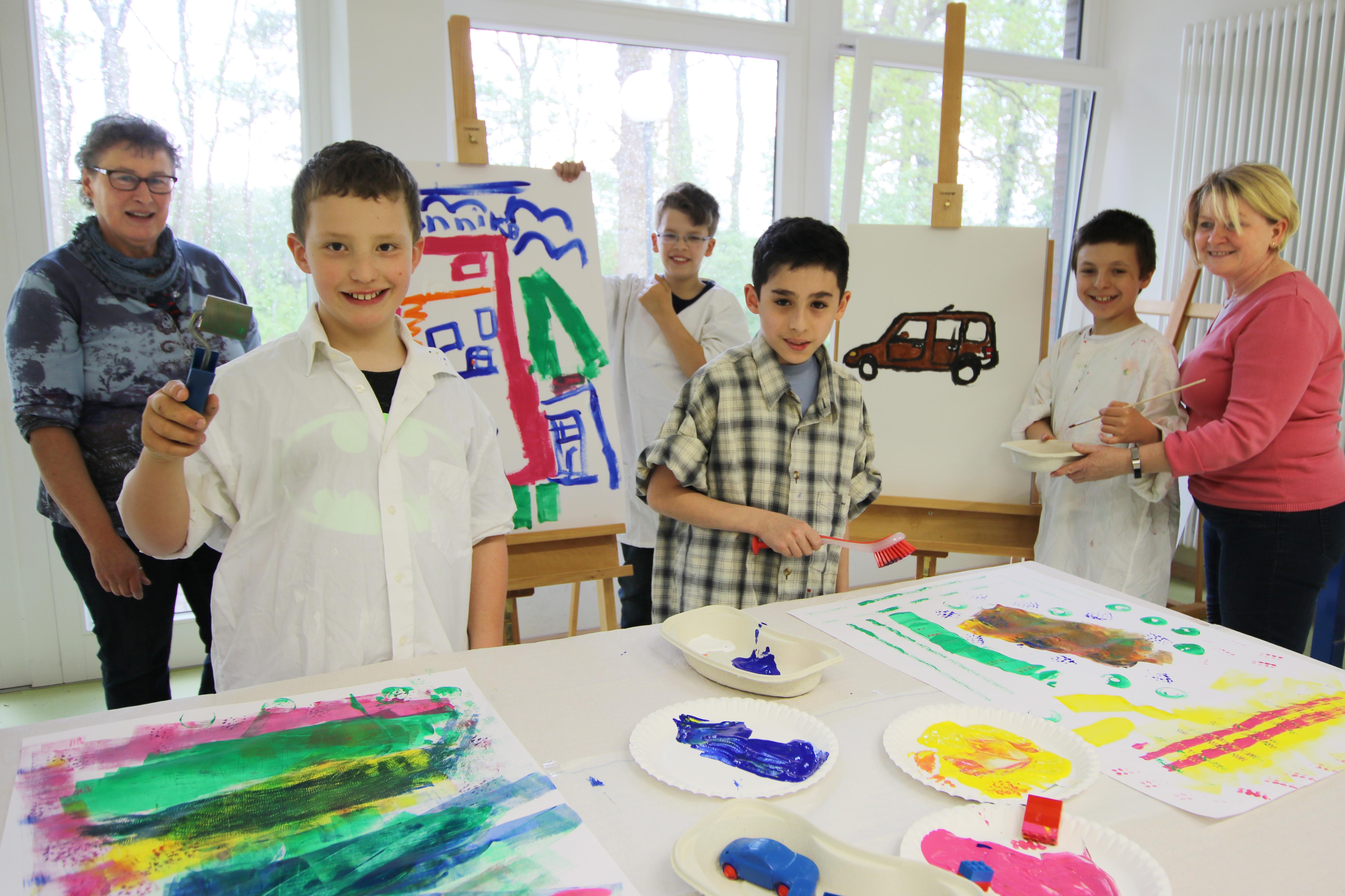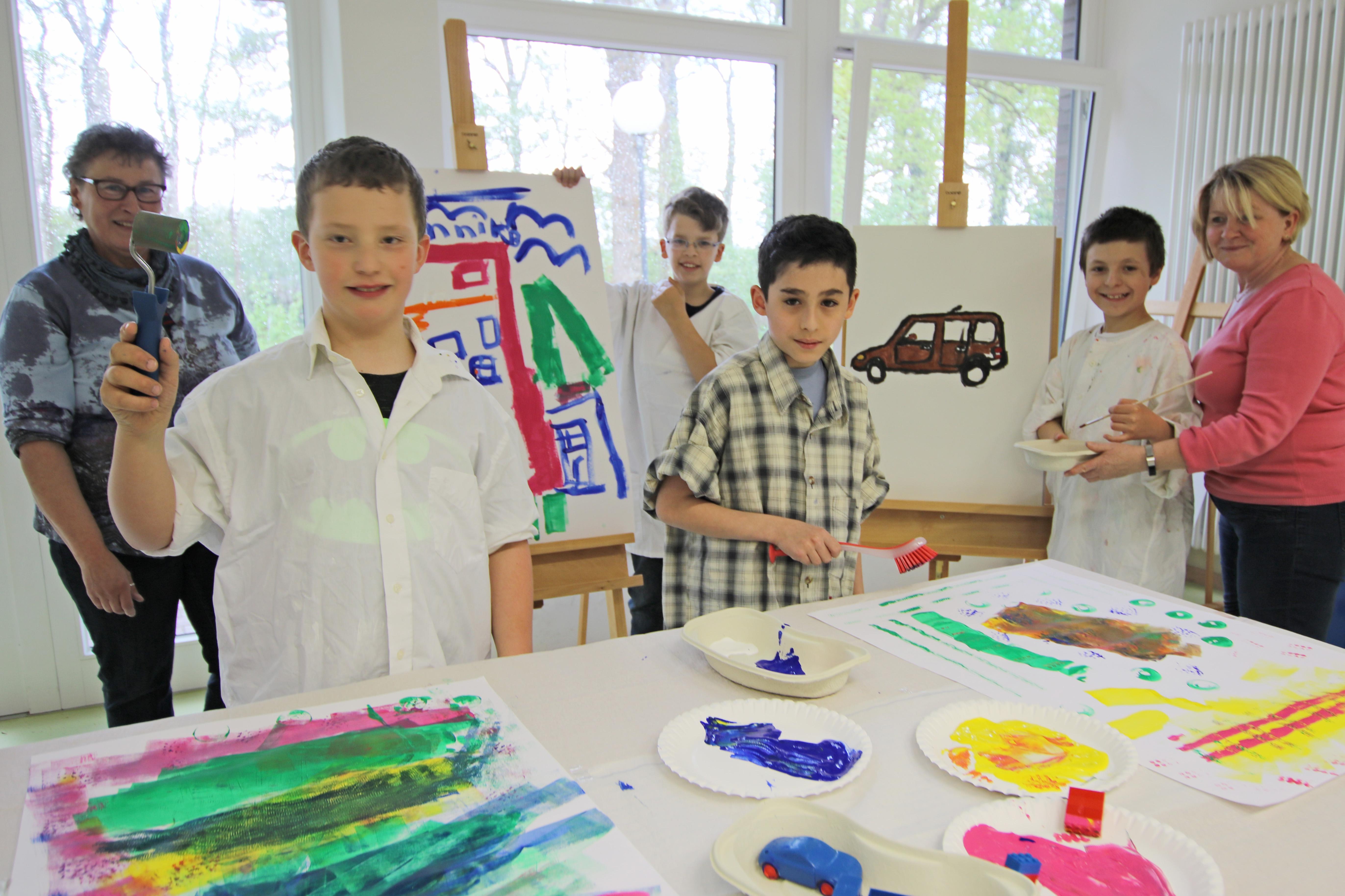 Oldenburg, 26.04.2018 - Mit 5.000 Euro von der Aktion Mensch wurde jetzt ein großer lichtdurchfluteter Raum am Borchersweg als Atelier hergerichtet, Staffeleien und eine Werkbank aufgestellt. Nun können sich die Schüler des pädagogisch-therapeutischen Zentrums während der Nachmittagsbetreuung der Diakonie künstlerisch betätigen. Bildnerische Tätigkeit stärkt das Selbstvertrauen von jungen Menschen, weil Beeinträchtigen für die Zeit des kreativen Tuns in den Hintergrund treten. Viele sind stolz, ihre Ergebnise vorzeigen zu können. So auch Pascal, Jannik, Batikan und Nikita. Sie konnten den neuen Kunstraum jetzt das erstmals nutzen.