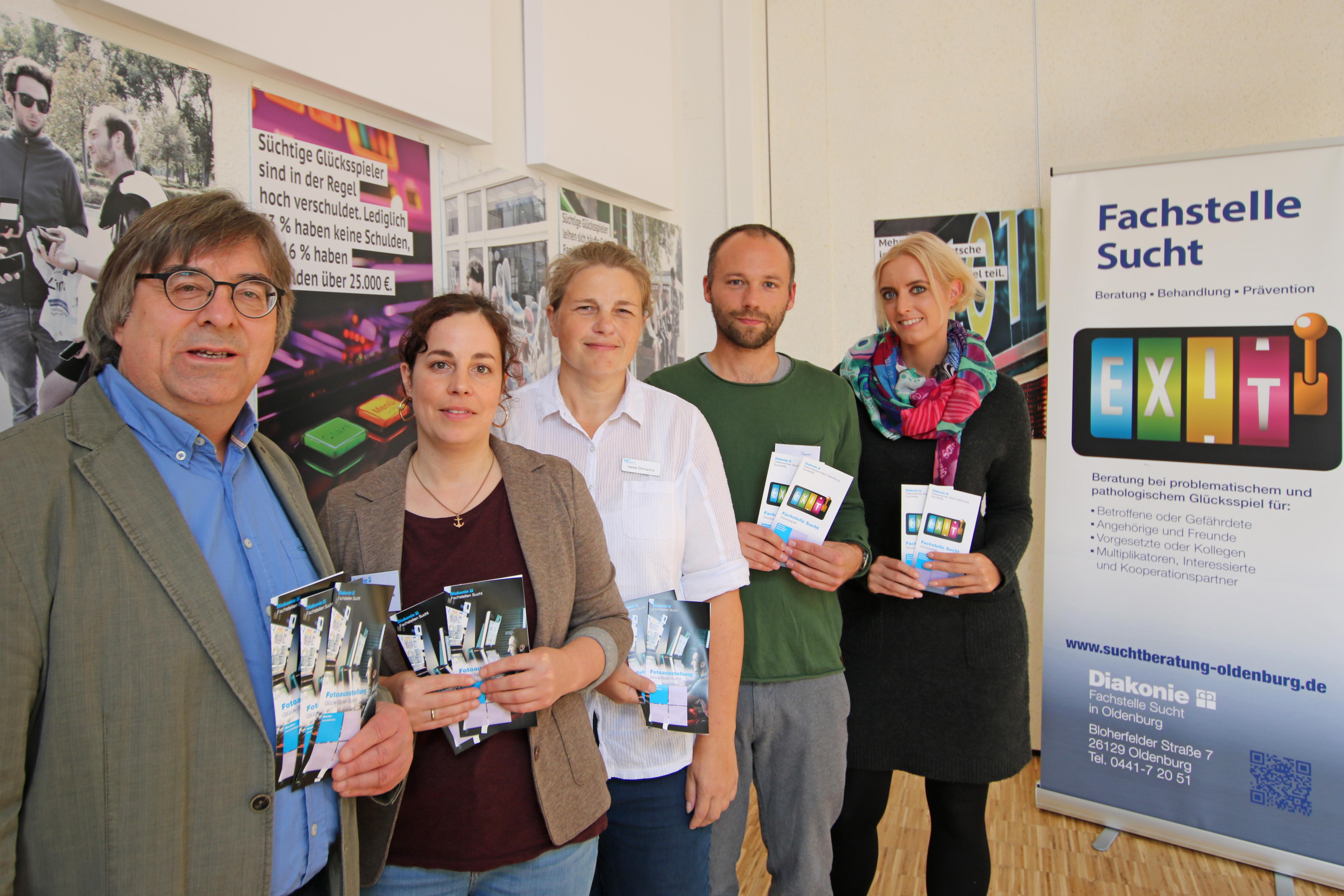Oldenburg, 25. Sept. 2019 - In nur drei Monaten haben Mitarbeitende der Fachstellen Sucht der Diakonie und die Jugendschutzbeauftragte der Stadt Wilhelmshaven eine Ausstellung zum Thema Glücksspielsucht an die Wand gebracht. Das wurde deutlich bei der Eröffnung der Ausstellung in der Fachstelle Sucht in Oldenburg. Damit die Betrachter mit den Informationen und Bildern nicht alleine bleiben, haben sich die Suchtberater der Diakonie entschlossen, hier wie auch an weiteren Ausstellungsorten als Ansprechpartner zur Verfügung zu stehen. Damit wird aus der Ausstellung zum Aktionstag Glücksspielsucht ein wichtiger Baustein der Präventionsarbeit. Zeigen wollen die Suchtberater die Ausstellung künftig in Schulen, in Justizvollzugsanstalten und anderen Orten, wo Spieler anzutreffen sind. Immer wird es darum gehen, auch als Ansprechpartner zur Verfügung zu stehen, erklärt Bernd Alpers, der in Wilhelmshaven in der Suchttherapie tätig ist. "Wir wollen die Menschen nicht alleine lassen!"