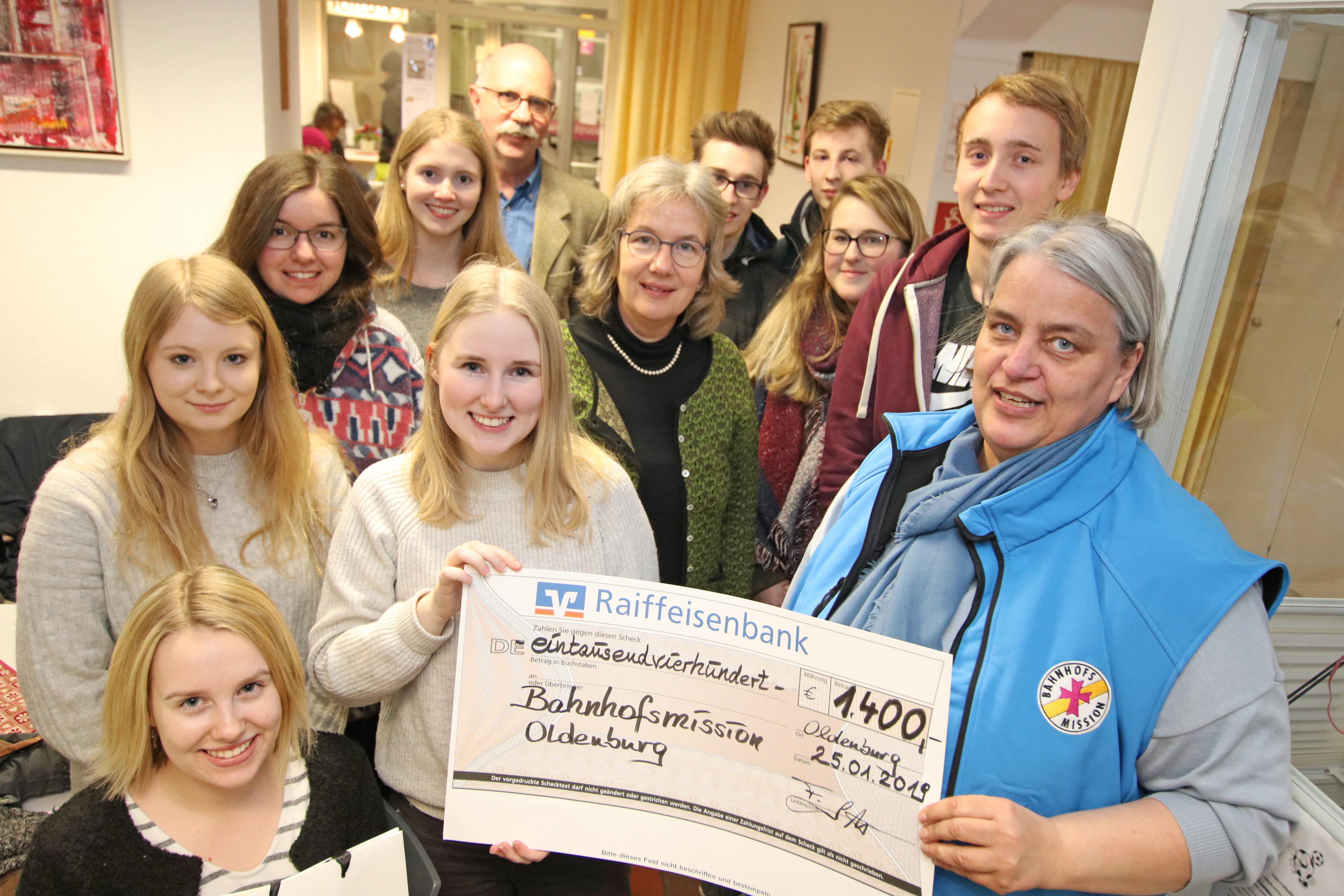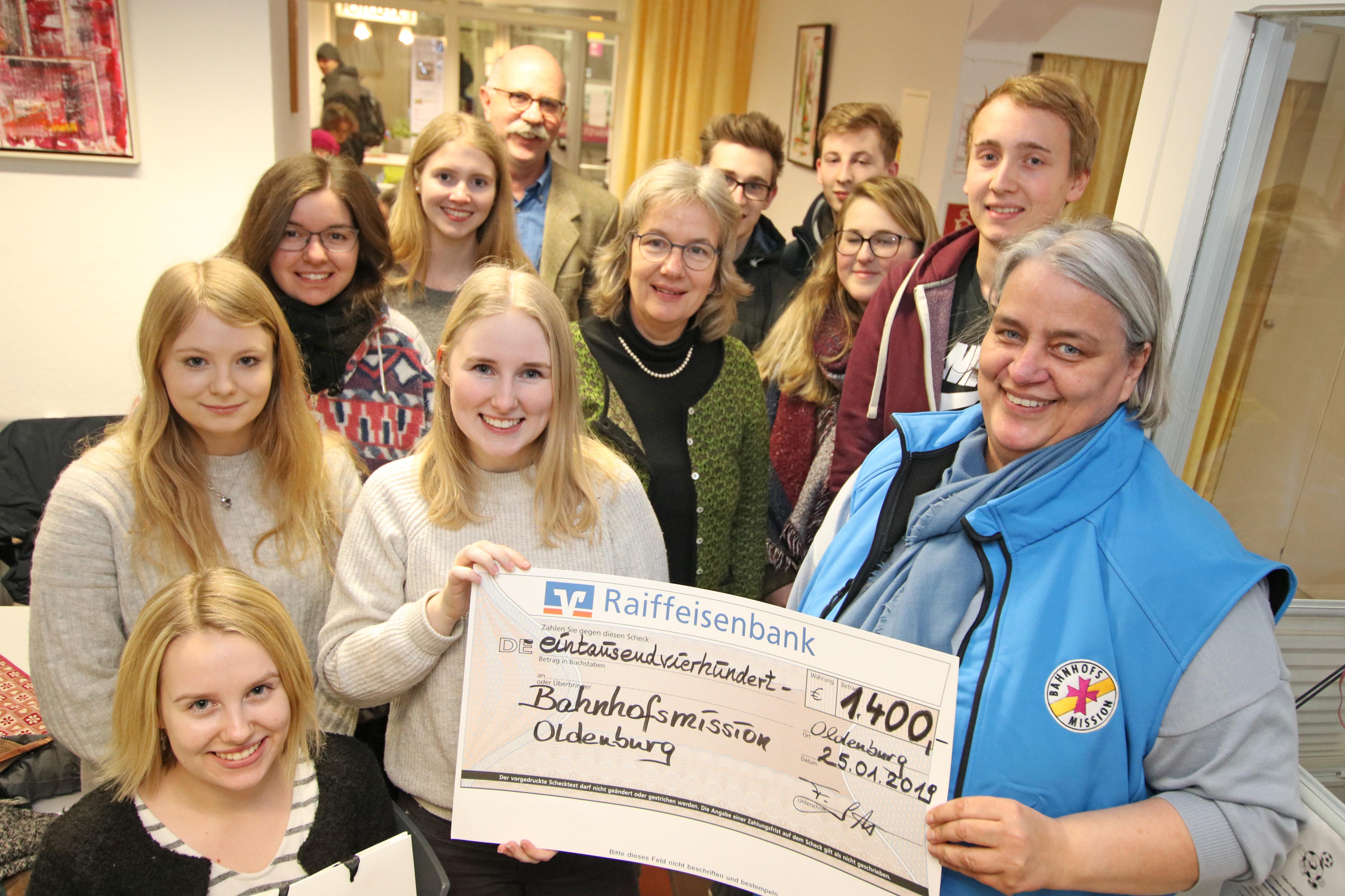 Erschrocken waren die SoziFAs im zweiten Ausbildungsjahr über die hohe Zahl junger Menschen, die auf der Straße leben. Das war der Anlass für die Gruppe zusammen mit den jüngeren Auszubildenden unter den Kolleginnen und Kollegen Spenden zu sammeln. Vor Weihnachten standen die Azubis an den Stempeluhren und warben für die Bahnhofsmission. 1.400 Euro konnten die SoziFas des ersten Lehrjahres jetzt anlässlich ihres Besuches in der Bahnhofsmission übergeben. Begleitet wurden die Azubis von Ihren Ausbildern Elke Henken und Frank Soelter.