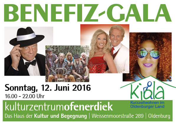 Oldenburg, 13.Mai 2016 - Eine Reise durch vier verschieden Musik-Genres und Showtanzeinlagen der Jumpin´ Boogie´s erwartet die Besucher der Benefiz-Gala am 12. Juni 2016 im Kulturzentrum Ofenerdiek. Von 16 bis 22 Uhr spielen Oldenburger Künstler zugunsten von Kiola. Der Verein will ein Haus zum Kurzzeitwohnen für behinderte Kinder aus dem Oldenburger Land errichten. Judith & Mel tragen volkstümliche Schlager vor. Das Gesangsduo kommt direkt von TV-Aufnahmen zum Konzert. Jens Sörensen bietet mit der „Sinatra-Story" musikalisch-biographische Rückblicke in das bewegte Leben des Entertainers. Sörensen singt alle großen Sinatra-Welthits verblüffend echt und kann als Sinatra-Double amüsant und informativ über sein Leben plaudern. Soul- und Bluessängerin Ester Filly hat es beim ffn-Osterhitmarathon weit nach vorn geschafft. Sie trägt neue und bekannte Stücke vor. Abgerundet wird das Programm durch die Band The Stingrays, die sich dem Beat und dem Zeitgeist der sechziger Jahre verschrieben hat. Sie bieten Rock'n'Roll, Blues und eine Prise Country. Karten gibt es im Kulturzentrum an der Weißenmoorstraße 289, bei www.adticket.de und an der Abendkasse.