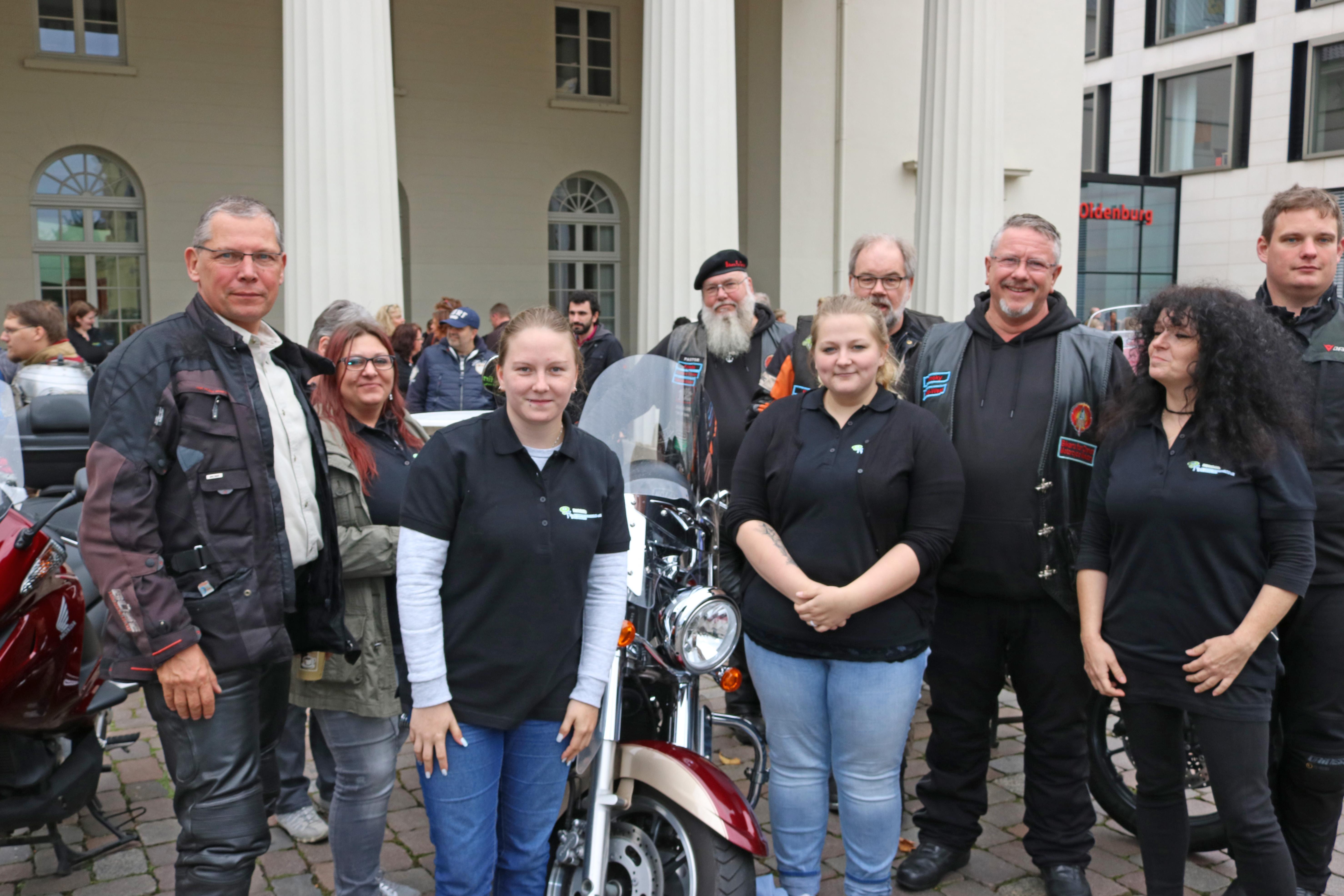 Oldenburg, 19. Sept. 2017 - Es hätte ein großes Event werden können. Die Schüler der Ev. Altenpflegeschule Oldenburg hatten sich auf hunderte Biker eingestellt und den ganzen Schlossplatz reserviert. Allein das Wetter scheint dagegen gewesen zu sein. Pastor Andreas Spelmeyer, der selbst mit dem Motorrad angereist war, kommentierte: Man kann auch bei Regen mit dem Motorrad fahren. In seiner Andacht mahnte Spelmeyer zur Entschleunigung. Auf der Straße, bei der Arbeit und im Leben. Verzögern und Innehalten sind wichtig, damit man den Anforderungen gewachsen bleibt. Das Treffen auf dem Schlossplatz und die Andacht in der Lambertikirche waren auf Inititaive einer christlichen Bikerorganisation zustande gekommen. Die Biker wollten damit in positiver Weise auf Pflege aufmerksam machen.