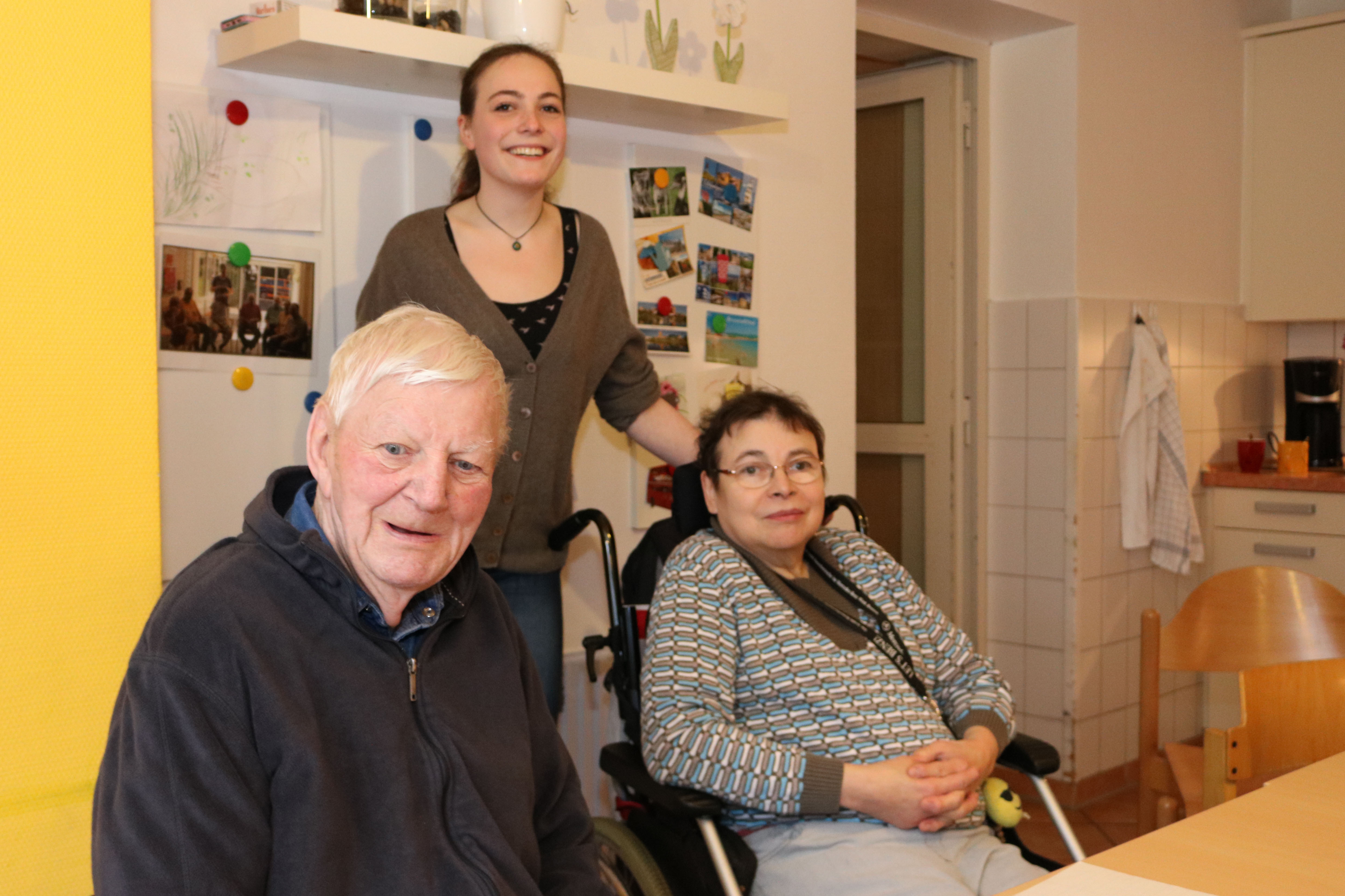 Oldenburg, 09.02.2017 - Elisabeth Laarmann (21) macht einen Freiwilligendienst im Seniorenwohnheim der Gemeinnützigen Werkstätten Oldenburg. Vorher hat Laarmann ein Jahr Chemie und Philosophie studiert. Jetzt will sie noch einmal neu überlegen, wo es beruflich hingehen soll. Diakonie-Freiwilligenkoordinatorin Fenni Lambers hat ihr die Stelle im Wohnheim am Ludwig-Quidde-Weg empfohlen. Erst, so gesteht Laarmann, war sie ganz schön unsicher. Schon nach dem ersten Gespräch in der Einrichtung änderte sich das. Allein ihren Tagesablauf musste die Frühaufsteherin etwas umstellen. Dienstbeginn ist 14 Uhr, Ende 21 Uhr. Und zweimal im Monat auch am Wochenende. Schnell hat sie gemerkt, welche Vorteile das hat: Wenn es mit Freunden mal etwas später wird, kann man am nächsten Tag ausschlafen. Außerdem kann man vormittags vieles erledigen, wofür man bei gewöhnlichen Arbeitszeiten frei nehmen oder gut planen muss. Inzwischen sind ihr auch die Menschen mit Beeinträchtigungen richtig ans Herz gewachsen. Verblüfft stell sie immer wieder fest, wie viel Lebensweisheit und Zufriedenheit sie haben. Als es am Anfang mit dem Überziehen von Stützstrümpfen mal nicht so klappen wollte, tröstete die Seniorin: Lass Dir ruhig Zeit. Das ist am Anfang immer so. Man muss erst lernen, wie es geht. Diese freundliche entgegenkommende Art der Bewohner hat dazu geführt, das Laarmann jeden Tag gerne zur Arbeit kommt. Selbst wenn mal Unangenehmeres zu tun ist. „Ich gehe jeden Abend mit einem Lächeln auf dem Gesicht nach Hause. Damit habe ich nicht gerechnet.“