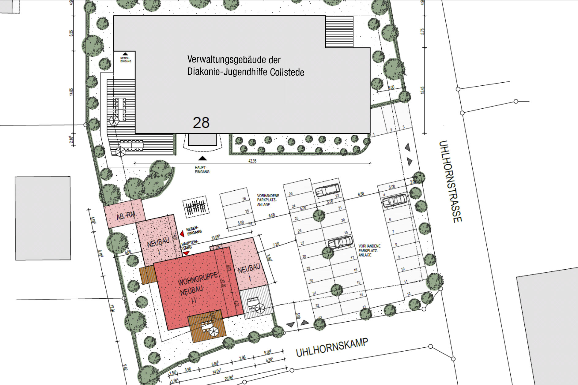 Bockhorn, 16. Juni 2016 – In einer Informationsveranstaltung für die Nachbarn stellten jetzt Diakonie-Vorstand Thomas Feld und Einrichtungsleiter Jan Prassel die Pläne für eine neue Wohngruppe für junge unbegleitete Ausländer vor. Kreis-Jugendamtsleiter Olaf Meyer-Helfers dankte der Diakonie für die Bereitschaft, weitere Jugendliche in der Jugendhilfe-Einrichtung aufzunehmen. Gebaut werden Zimmer und Gemeinschaftsräume für 9 Jugendliche und ihre Erzieher. Auch eine Kleinstwohnung zur Verselbständigung ist angegliedert. Damit beim Erreichen der Volljährigkeit der Übergang vom betreuten Wohnen in einen eigenen Hausstand sanft gestaltet werden kann.