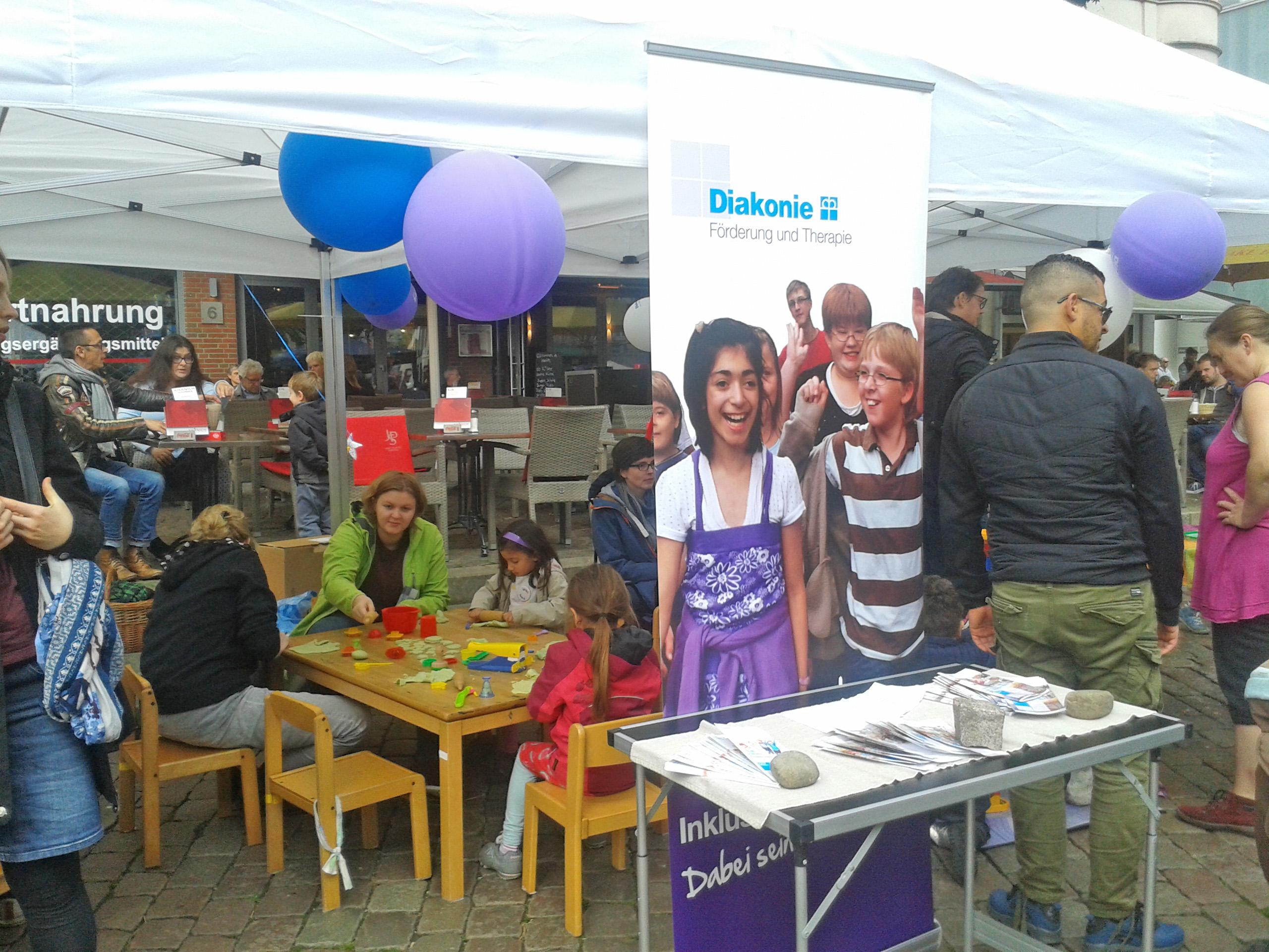 Oldenburg, 19.09.2017 – Mit zahlreichen Materialien aus dem Kindergartenalltag haben sich die Kindertagesstätten und Krippen der Diakonie auf dem Oldenburger Marktplatz präsentiert. Neben den sportlichen Angeboten des Spielefant luden die Einrichtungen der Diakonie Kinder zum Malen, Basteln und Kneten ein. Eltern erläuterten die Erzieherinnen die inklusiven Konzepte Diakonischer Einrichtungen. An der Aktion zum Weltkindertag haben sich beteiligt: Diakonie-Krippe Kleine Entdecker, Kindertagesstätte Philosophenweg, Kindertagesstätte Birkhuhnweg und die DiKiTa Diakonie Kindertagesstätte an der Gorch-Fock-Straße.