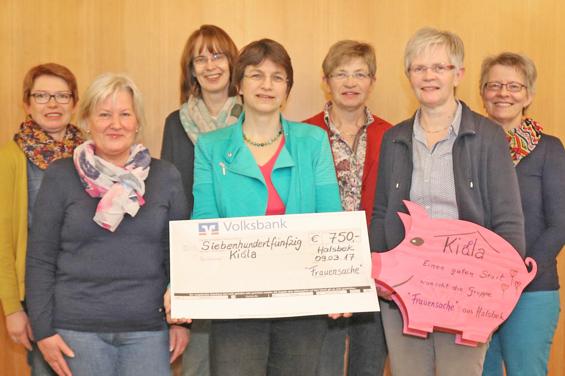 Oldenburg, 10.03.2017 – Weil sie aus ihrem Umfeld wissen, wie stark eine Familie beansprucht wird, die ein Kind mit Beeinträchtigungen pflegt und versorgt, sammelt die Halsbeker EEB-Gruppe „Frauensache“ für die Errichtung von Kiola. Unter diesem Namen soll ein Wohnhaus entstehen, das Kinder und Jugendliche mit Behinderungen aufnimmt. Für eine begrenzte Zeit werden die Kinder hier betreut und gepflegt, um den Familien Entlastung und Entspannung zu ermöglichen. In dem großen Spendenschwein haben die Halsbeker Frauen 750,- Euro gesammelt. Auch die Einnahmen vom Bratwurst-Verkauf, Kuchen und Kaffee-Ausschank und einer Tombola beim Tag der offenen Tür in der Kindertagesstätte Halsbek wanderten in das Spendenschwein. Jetzt bekommt das Schwein einen Ehrenplatz, versprach Ute Dorczok, Vorsitzende von Kiola. Sie dankte Annelene Hobbie, die den Anstoß gegeben hatte, der Kindertagesstätte Halsbek und allen, die zu dieser Summe beigetragen haben.