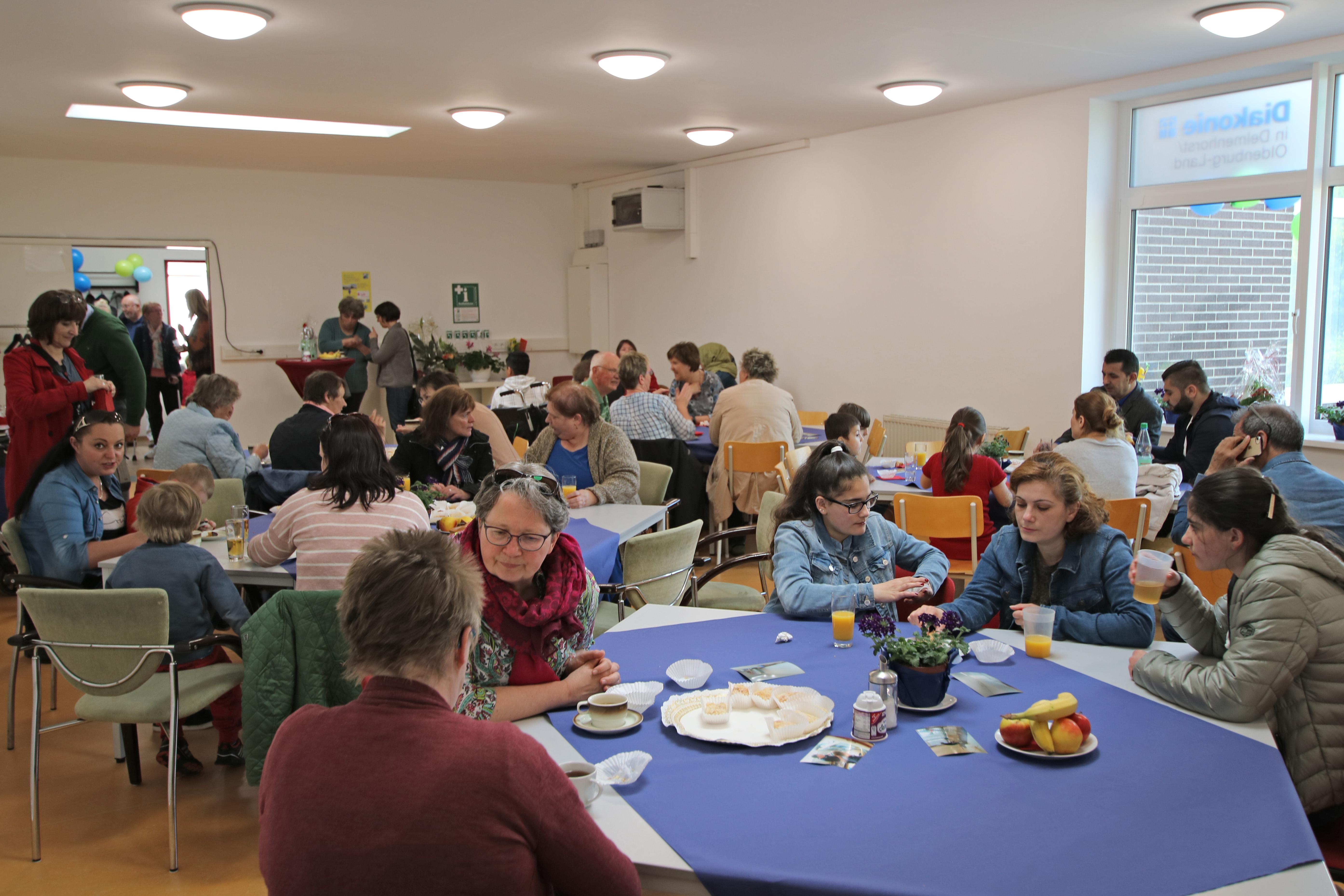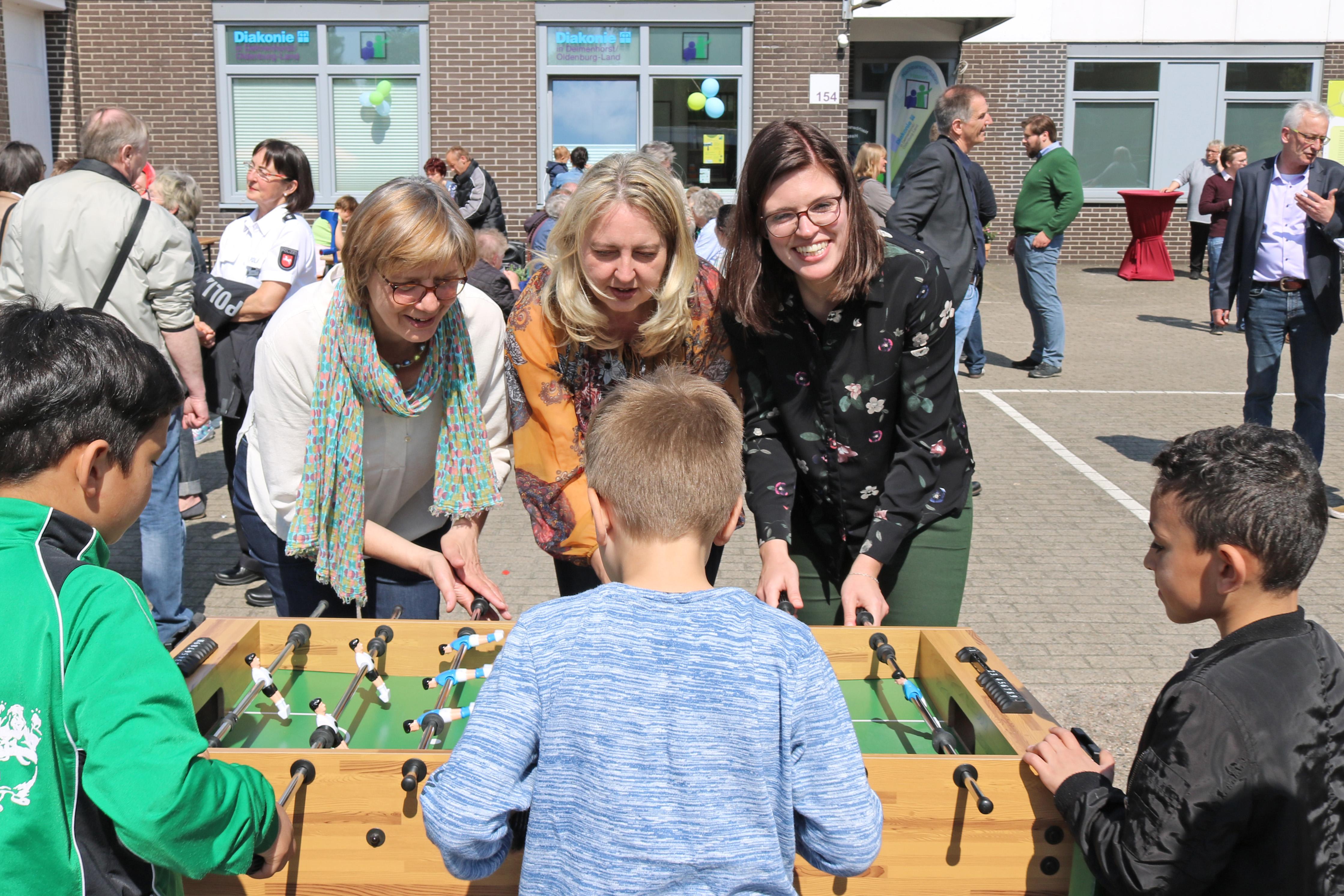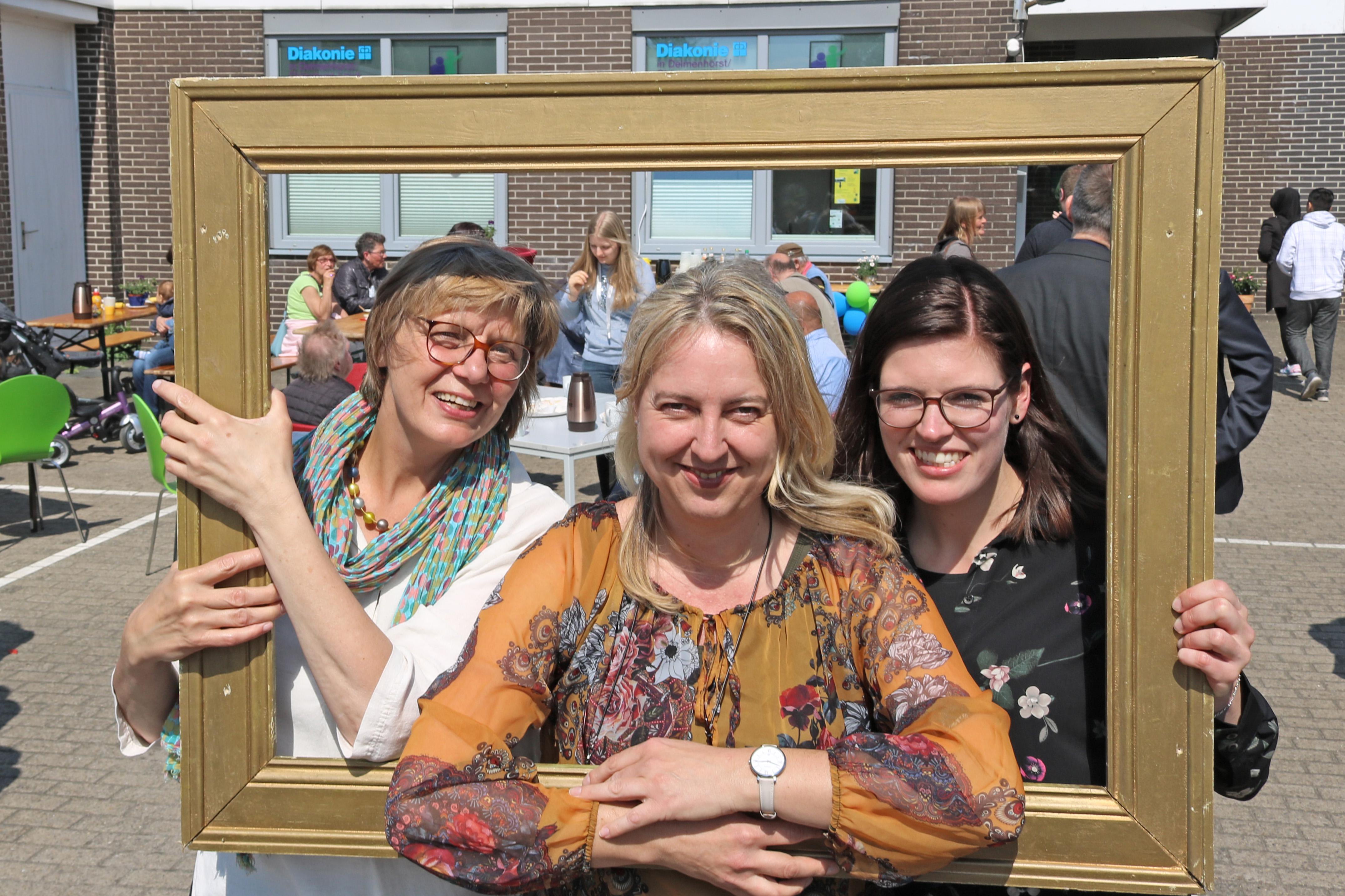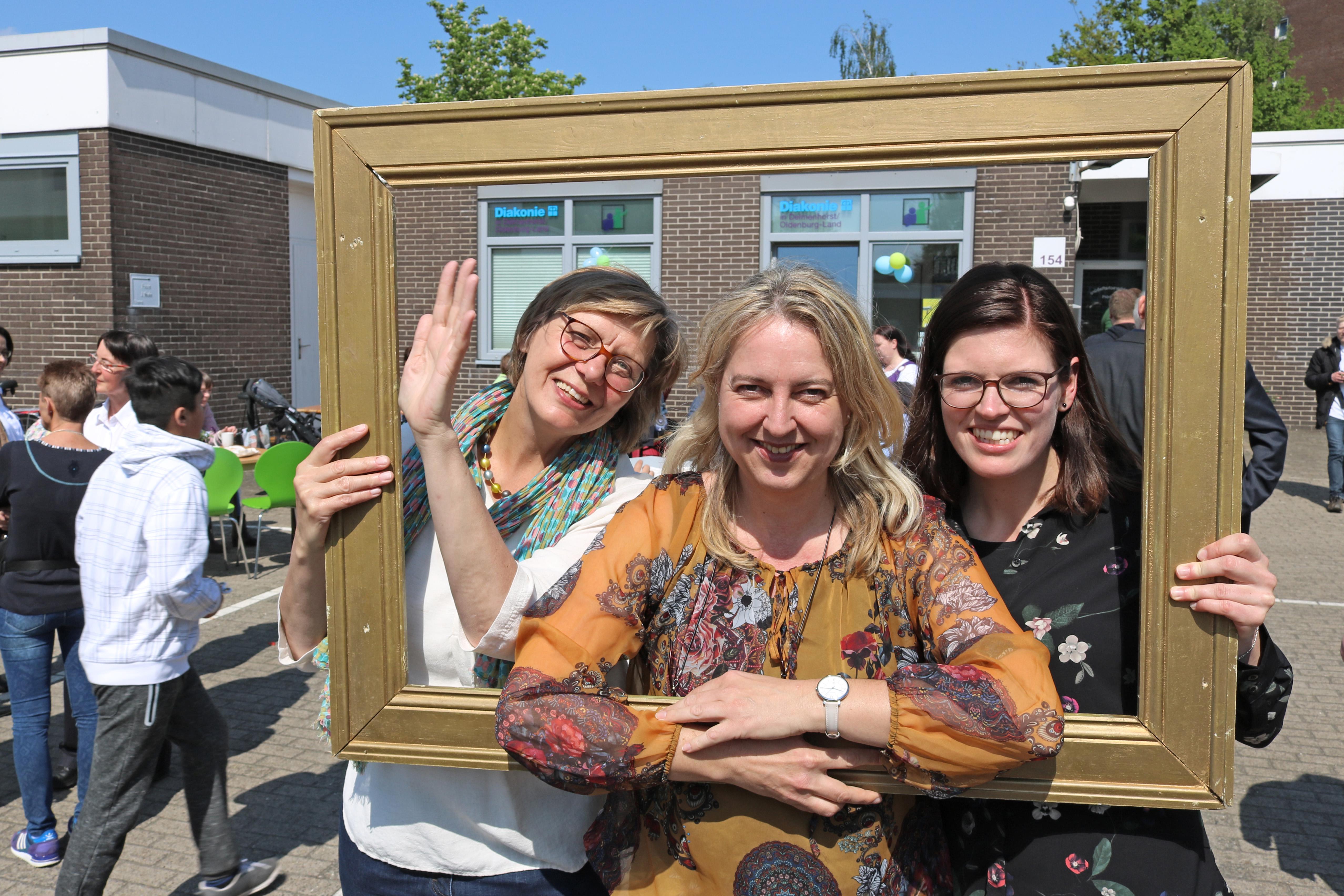 Delmenhorst, 02.05.2018 - Mit einem großen Fest feiern die Hasporter ihr neues Nachbarschaftsbüro. Oberbürgermeister Axel Jahnz wünschte dem Team mit Elke Munderloh und Sabine Kettler viel Erfolg und rief die Hasporter auf, sich ihr Nachbarschaftsbüro anzueignen. Für Kreisdiakoniepfarrer Dietrich Jaedecke ist das Nachbarschaftsbüro ein Ort der Nächstenliebe, an dem Nachbarn sich begegnen und miteinander etwas unternehmen können. Gleich welcher Herkunft, Religion, Geschlecht und welchen Alters: Im Nachbarschaftsbüro sind alle willkommen. Diakonie-Kreisgeschäftsführerin Saskia Kamp startete das Programm mit Kaffee und Kuchen, Glücksrad, Kinderschminken und vielem mehr. Das Netzwerk „Gemeinsam in Delmenhorst. Gesund und bunt“ lies Frisbees fliegen und mit einem großen Bilderrahmen konnten sich Besucherinnen und Besucher für Erinnerungsfotos in Szene setzen. Das neue Nachbarschaftsbüro ist regelmäßig montags, dienstags und donnerstags geöffnet von 9:00 bis 13:00 Uhr und 16:00 bis 18:00 Uhr.