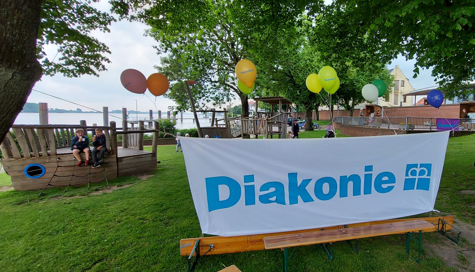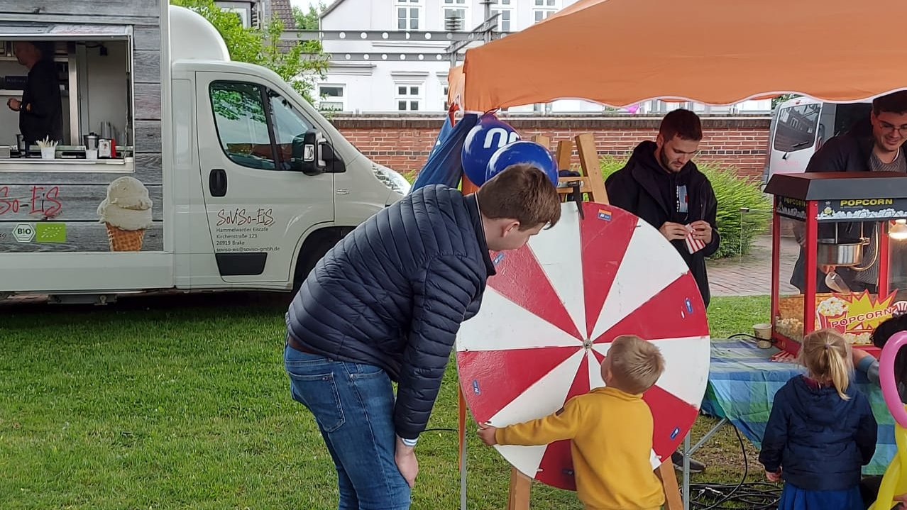 „Wir hatten am Vormittag die Sorge, dass auf Grund des angekündigten schlechten Wetters nicht viele Familien zu unserem Kinderfest kommen“, sagte Marie Bücking, Leiterin der Diakonie und Organisatorin des Kinderfests: „Aber unsere Erwartungen wurden übertroffen! So viele unbeschwerte Kinder, soviel Lachen und Ausgelassenheit haben wir lange nicht mehr erlebt. Die viele Arbeit hat sich definitiv gelohnt“. Auch die Kinder und Erwachsenen hatten nur Lob: „Am besten gefällt mir die Rollerrutsche“, sagte die 8-jährige Hayat. Für den 5-jährigen Nils war das Eis des Beste. „Wir haben 5 Kinder und hier ist alles kostenlos“ freut sich ein Vater über das tolle Angebot. Und zum Wetter hatte die 9-jährige Maya die richtige Einstellung: „Der Regen macht nichts, Mama hat extra die Regensachen eingepackt.“