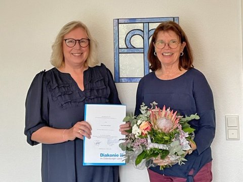 Martina Fisser, Geschäftsführerin des Diakonischen Werks Oldenburger Münsterrland, bedankte sich bei Kleefeld mit einer Urkunde und einem Blumenstrauß. Das Team in Cloppenburg hat im Rahmen einer Dienstbesprechung gemeinsam das Dienstjubiläum gefeiert. „Ich kann für das gesamte Team sprechen und möchte mich bei Marlies Kleefeld für das gute Miteinander bedanken. Wir freuen uns, dass wir sie als Kollegin haben“, sagte Fisser in der Dienstbesprechung.