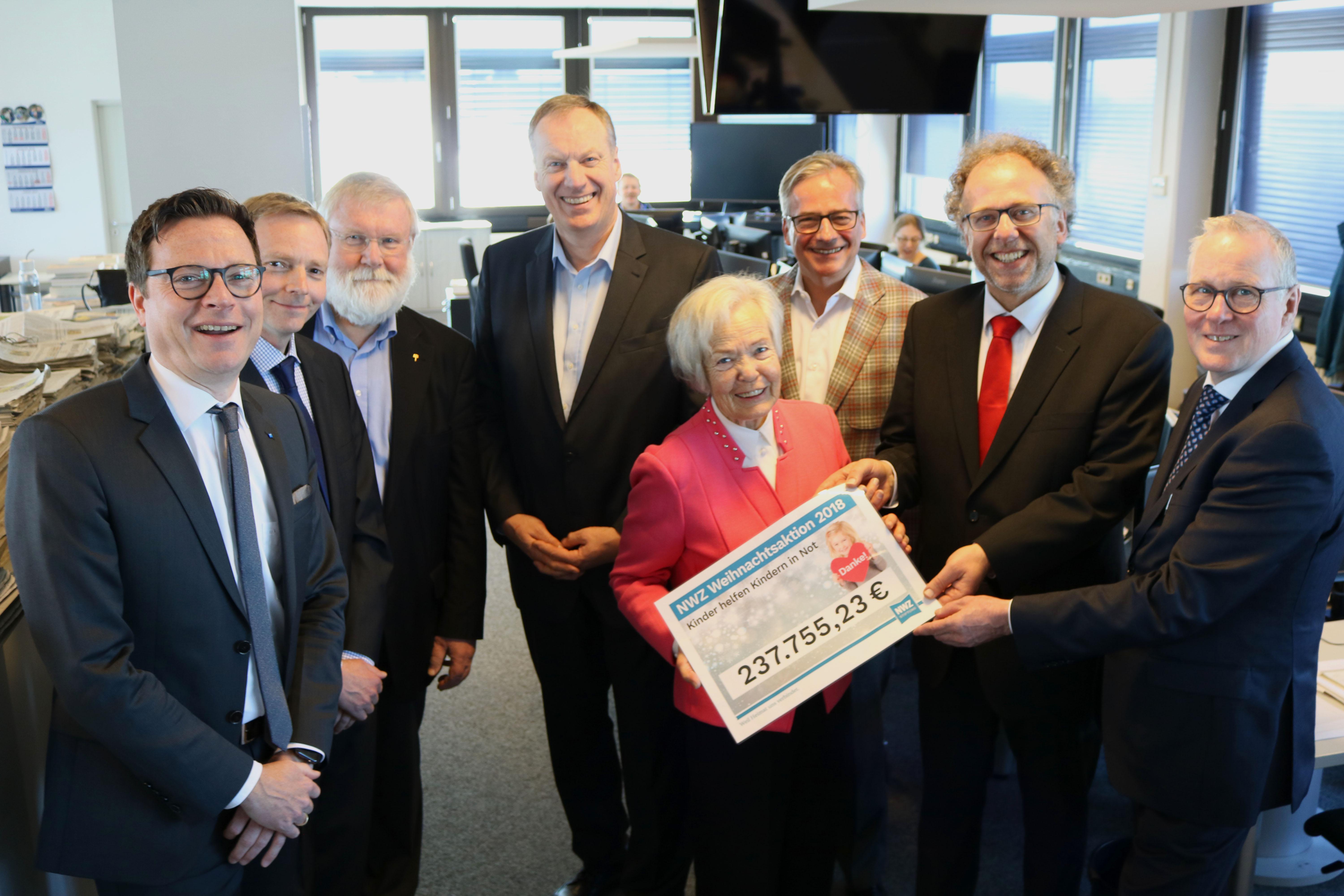 Oldenburg, 15.4.2019 - "Miteinander können wir viel bewegen", freute sich NWZ-Geschäftsführer Harold Grönke bei der offiziellen Übergabe der Spenden aus der NWZ-Weihnachtsaktion an Diakonie und Caritas. Die Summe hatte sich noch auf 237.755,23 Euro erhöht, konnte NWZ-Redakteur Jürgen Westerhoff mitteilen. Diakonie-Vorstand Thomas Feld und Dietmar Kattinger, Referent für Presse- und Öffentlichkeitsarbeit der Caritas, bedankten sich für die tolle Unterstützung der sozialen Arbeit.