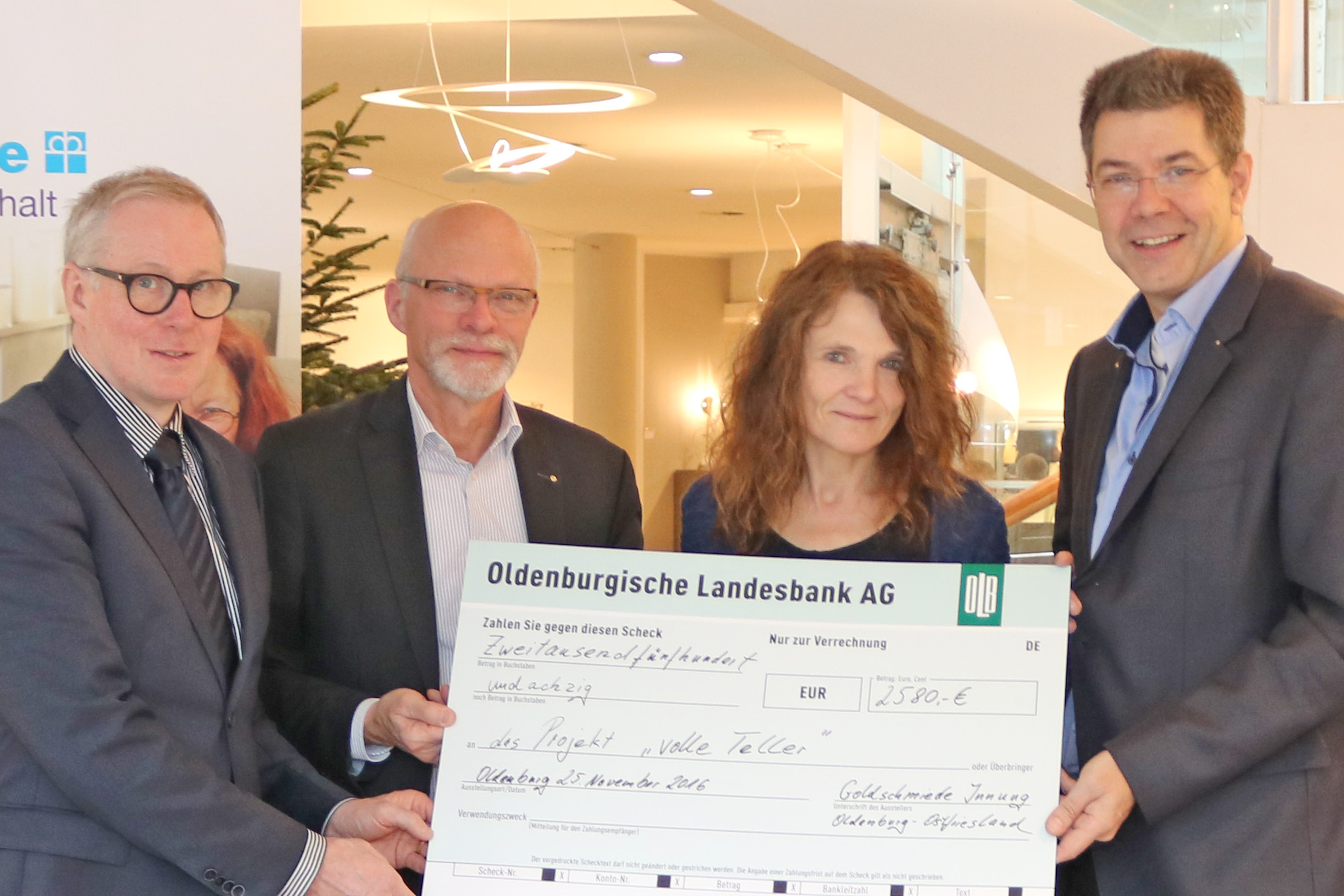 Oldenburg, 25.11.2016 - 2580,- hat eine Aktion der Gold- und Silberschmiede Innung Oldenburg-Ostfriesland erbracht. Mit dem Geld wird die Arbeit der Küche im Tagesaufenthalt abgesichert. Das Mittagsangebot wird stark nachgefragt, muss aber ohne öffentliche Zuschüsse auskommen. Deswegen sind Spenden sehr willkommen.