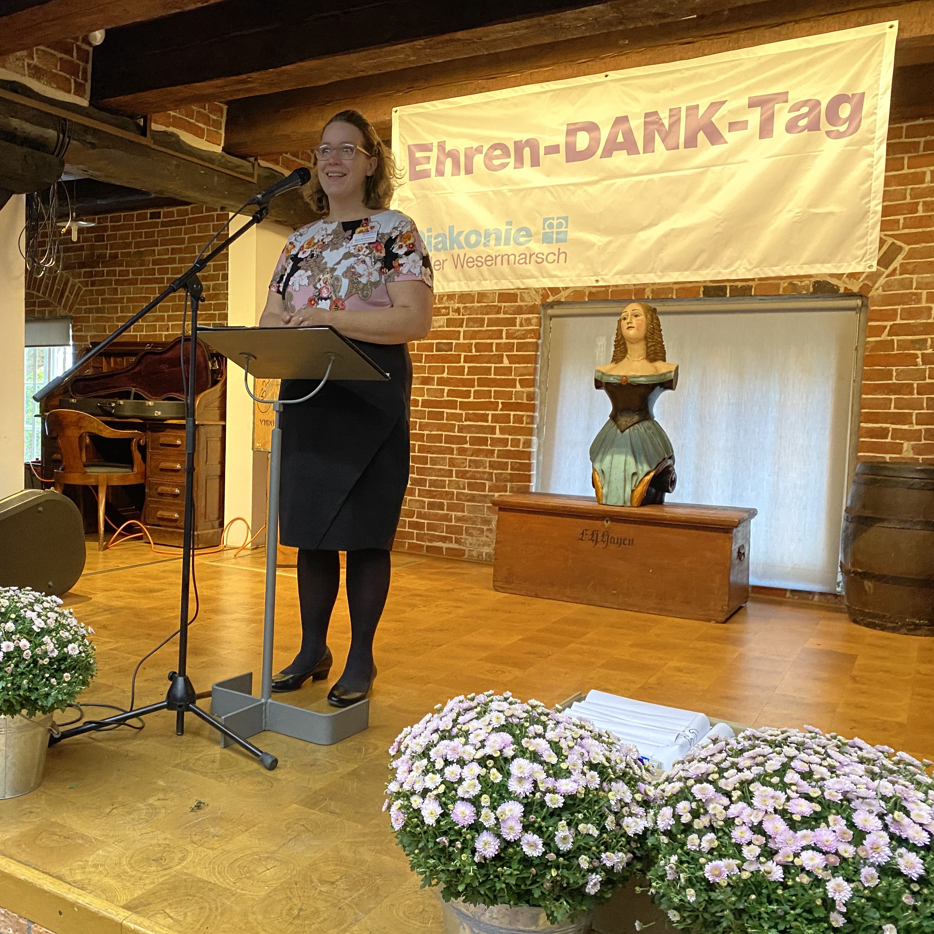 Brake, 7.10.2022 - Die Diakonie Wesermarsch hatte an diesem Donnerstag zum ersten Mal zum „Ehren-DANK-Tag“ nach Brake eingeladen. In einem feierlichem Rahmen im Schiffahrtsmuseum in Brake dankte Marie Bücking, Leiterin des Kreisddiakonischen Werkes Wesermarsch, ehrenamtlich engagierten Menschen. „Wir wissen, wie wichtig soziales Engagement in unserer Gesellschaft ist – ohne die vielen ehrenamtlich Engagierten würden wir viele Angebote hier in der Wesermarsch nicht umsetzen können“ stellt Marie Bücking fest. „Uns ist es wichtig, gerade den vielen Engagierten im sozialen Bereich ganz offiziell und in einem feierlichen Akt unseren Dank auszusprechen.“