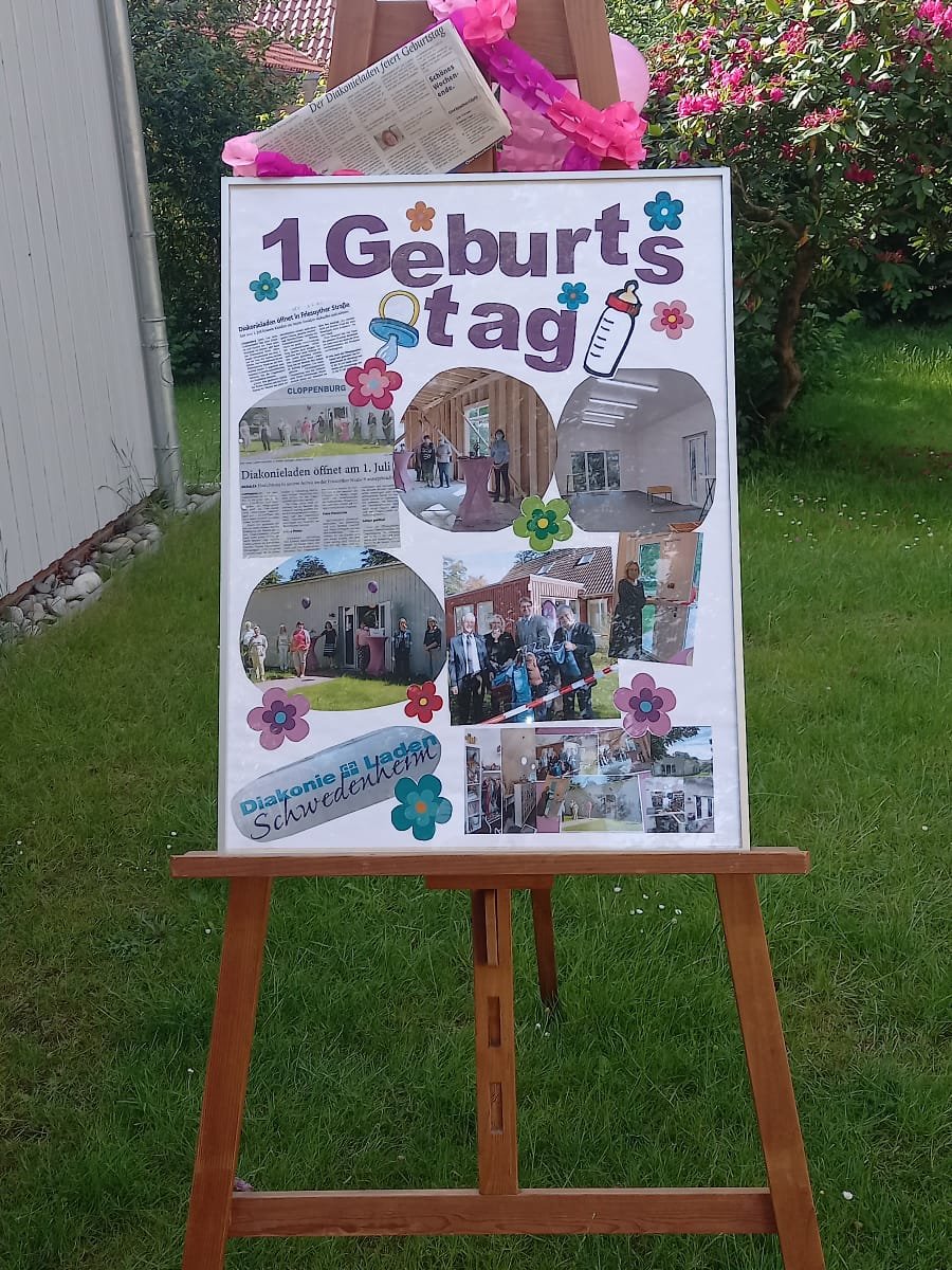 Cloppenburg, 1.6.2022 - Seit einem Jahr ist der neue Diakonie-Laden in Cloppenburg geöffnet. Das hat das Team gemeinsam mit Kunden, Ehrenamtlichen und Mitarbeitenden gefeiert. Auch Kreispfarrerin Martina Wittkowski war zu der Feier gekommen.