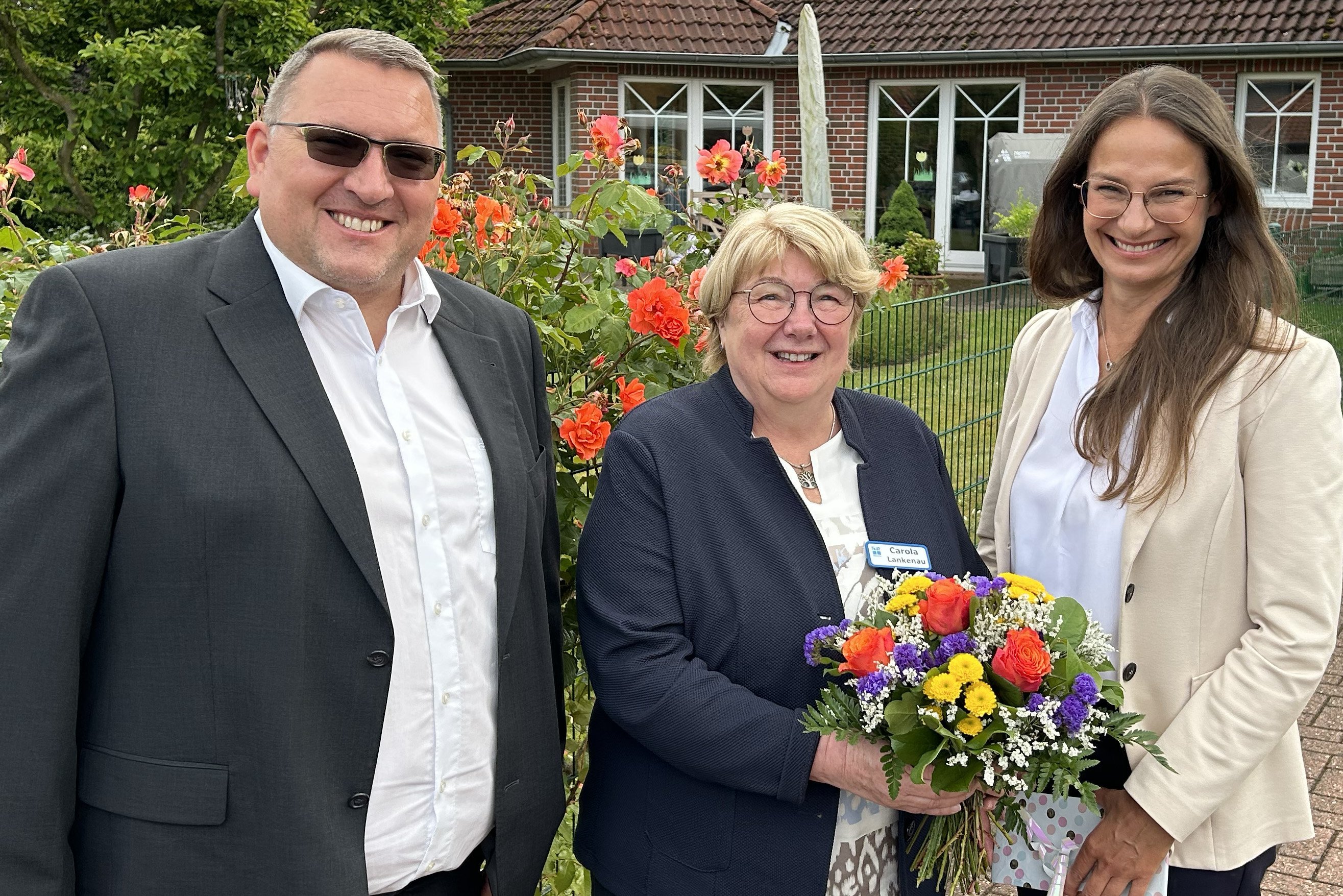„Wenn ich das Gebäude der Tagesbetreuung in Wardenburg betrete, fühle ich mich immer direkt heimisch“, sagt Sören Krieghoff, der sich im Namen der Diakonie im Oldenburger Land für die Arbeit von Lankenau bedankt. Auch Silke Seehase, Personalreferentin der Diakonie, betont das heimelige Gefühl, das in der Tagesbetreuung erzeugt wird. Die 17 Tagesgäste kochen zum Teil gemeinsam, ernten Äpfel, oder kochen Gemüse ein. Durch ihre liebevolle Arbeit hat Lankenau die Tagesbetreuung Wardenburg zu einem Ort der Geborgenheit und des Wohlbefindens gemacht.