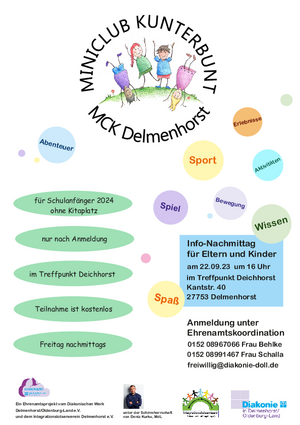Ehrenamtliche der Diakonie starten Kindergruppe für Kinder ab 5 Jahren - Infonachmittag am Freitag, 22.09.2023, 16 Uhr im Treffpunkt Deichhorst