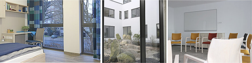 RehabilitantInnen, die sich zu einer Therapie in der Fachklinik Weser-Ems entschieden haben, finden ansprechend eingerichtete Einzelzimmer und freundliche Therapie-, Sozial- und Gemeinschaftsräume vor. Moderne Gestaltung und zurückhaltende Farbgebung unterstützen die Konzentration auf die therapeutischen Inhalte.